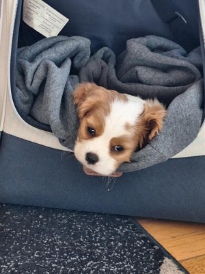 Bought this for our Cavalier King Charles puppy. Works great in the car and also as an easy portable crate around the house.