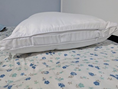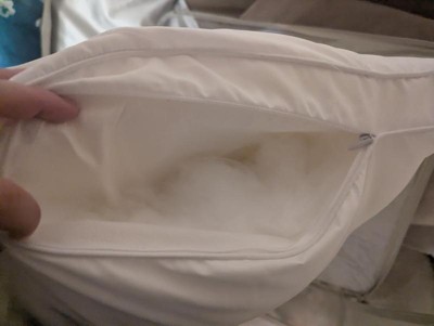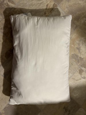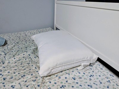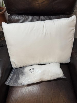 This pillow is great! I love that it comes with extra stuffing to add to remove for the wanted level or firmness. I only had to add a little bit more stuffing to the pillow to have it to my liking. It fits in a normal pillowcase perfectly, which is a huge plus!