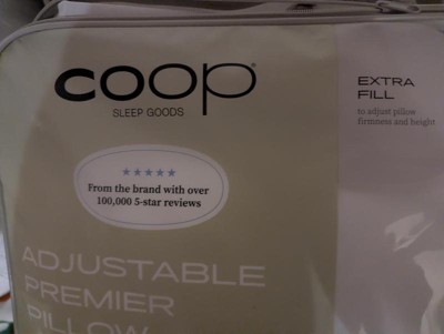 The Coop pillow is on the softer side. It does come with extra stuffing so you can customize the thickness. I like the concept but feel that the extra fill is a bit messy. When I unzipped the pillow, I had to watch to make sure none came out. For those who prefer this style of pillow, I would recommend it.