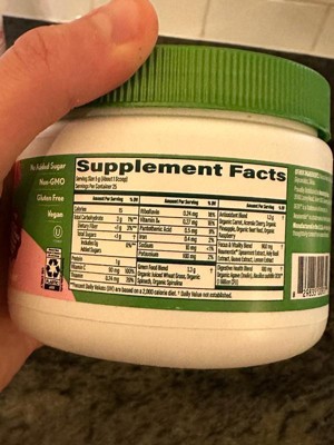 [This review was collected as part of a promotion.] The ingredients appear to be standard and in average amounts, similar to other green powders. While the packaging feels a bit cheap, I do appreciate the inclusion of a scoop. However, I didn't enjoy the flavor; the berries don’t blend well with the greens.