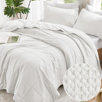 Transform your bedroom with our luxuriously soft textured waffle-weave bedding. This extra fluffy comforter set contains lightweight polyester filling while maintaining a comfortable temperature for any season. So you can enjoy warm nights in the winter and cool, breathable comfort in the summer. With its blending of style and comfort, this soft comforter is the ticket to a quality sleep experience. And thanks to premium polyester fabric and our innovative dyeing method, it's also machine washable while being resistant to fading, shrinking, and seam issues, ensuring your bedding's longevity.