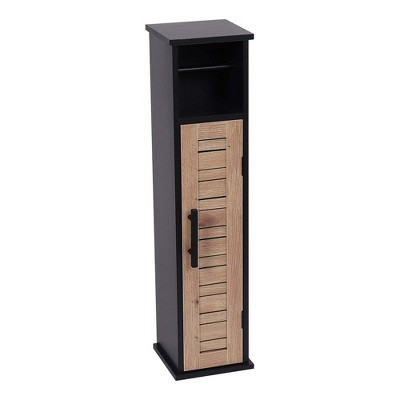 - CONTEMPORARY DESIGN: With its black and brown finish with vented door and metal handle, this toilet cabinet effortlessly complements various bathroom decors
