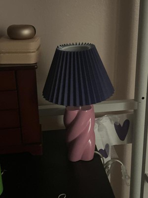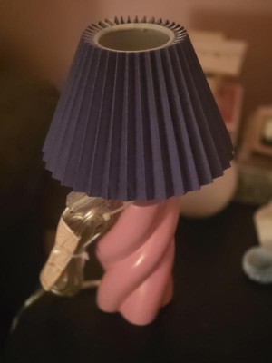 Brighten up any space with this Mini Pink Twisted Table Lamp featuring a bold blue pleated shade. The playful pink twisted base adds fun style, while the vibrant colors bring personality to bedrooms, desks, or cozy corners. The 6.5" x 10.75" size makes it ideal for small spaces, offering just the right amount of light for reading, relaxing, or adding ambiance. With an easy on/off switch, this lamp is both stylish and functional.