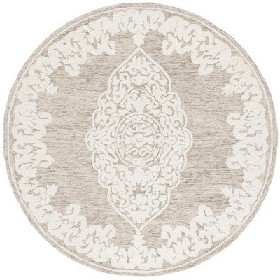Abstract ABT353 Handmade Tufted Area Rug - Ivory/Beige - 6'-0" x 6'-0" Round - Safavieh