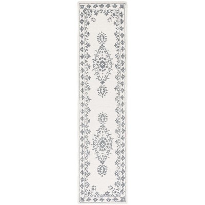 Elevate your home decor with this exquisite Hand Tufted Wool and Cotton Runner Rug, crafted by skilled artisans in India. At a comfortable height of 3/8 inches, this runner measures 2 feet 3 inches by 9 feet, fitting perfectly into hallways and long spaces. The elegant ivory and grey color palette creates a serene and sophisticated look that will complement any room. Made of a premium blend of 80% Wool and 20% Cotton, it offers both durability and softness underfoot.