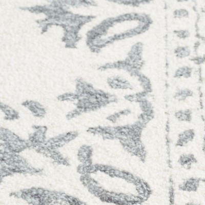 Beautifully adorned with a sophisticated ivory and grey palette, this rug showcases an exquisite traditional pattern. The central medallion, a timeless motif, is surrounded by intricate floral and geometric details that extend out towards the border, creating a seamless and harmonious design that will complement any room.