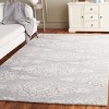 Colored in a sophisticated ivory and grey palette, the rug showcases a beautiful pattern that draws inspiration from classic motifs. The design features intricate floral and vine patterns that evoke a sense of elegance and serenity, making it an ideal choice for any decor theme, from traditional to modern.