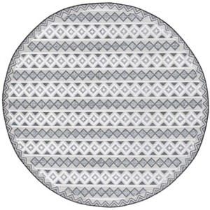 Elevate your living space with our exquisite Indoor/Outdoor Area Rug, meticulously crafted to offer both style and durability. This 6'-5" x 6'-5" round area rug, featuring a tasteful blend of BLACK, GREY, and IVORY hues, is a stunning piece that complements any decor.