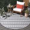 Add sophistication to your space with this beautifully designed round area rug, perfect for creating a cozy and inviting atmosphere while offering the practicality required for both indoor and outdoor living.