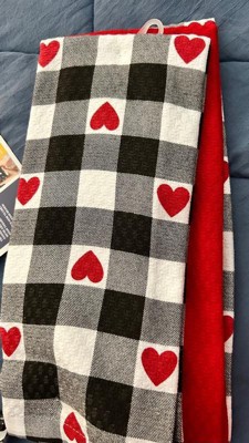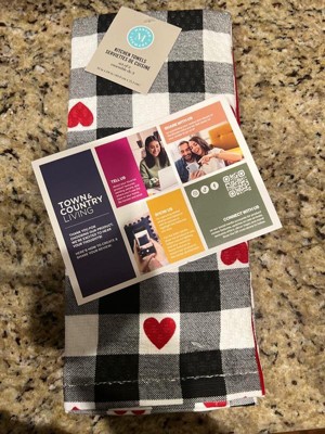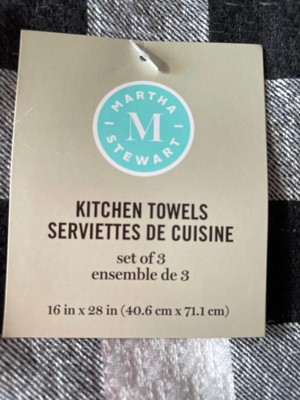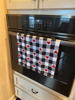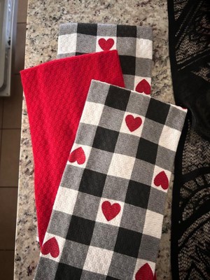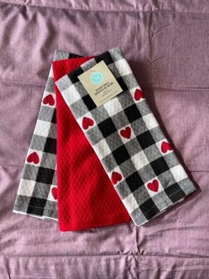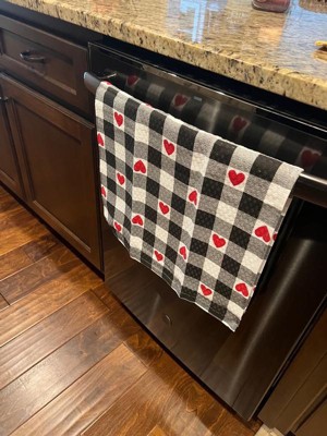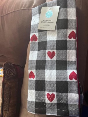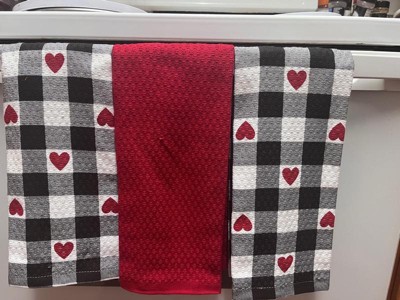 Martha Stewart 3pk Love Check Gingham Hearts Kitchen Towel Set Black/White: 100% Cotton, Classic Woven Pattern, 28"x15"