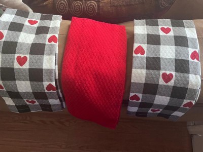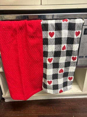 [This review was collected as part of a promotion.] Not only are these super cute but they are absorbent too. They could be used year round with the black and white hearts and there is a plain red towel too or they could be used around Valentines Day. I really like the hanging “hook” in the corner of each towel so they could hook onto something too. They are soft but dry dishes nicely. I really like these and would not hesitate to buy more of them!