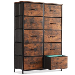 JIONJOY 10-Drawer Vertical Dresser - 31.4" Wide Rustic Fabric Storage Chest for Bedroom/Nursery, Steel Frame