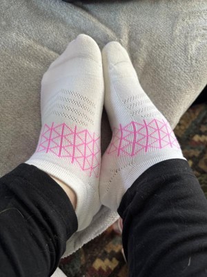 Experience next-level comfort with Hanes Absolute™ Active women's no-show socks, designed for women who want socks that disappear inside sneakers, flats, and loafers while keeping feet supported and comfortable all day. Crafted from a soft, cozy cotton-blend fabric, these socks surround your feet with gentle cushioning while a seamless toe reduces friction and irritation for a smooth feel inside shoes. Built-in arch support and a deep Y-heel pocket provide a secure, stay-put fit, while breathable mesh panels and moisture-wicking fabric help keep feet cool and dry during workouts, errands, or casual wear. Finished with a low-cut design and a silicone heel gripper to prevent slipping, these super no-show socks deliver the perfect combination of comfort, functionality, and style. Sold in a convenient four-pack, they offer lasting durability, versatile wear, and everyday value, making them a must-have for your sock drawer.