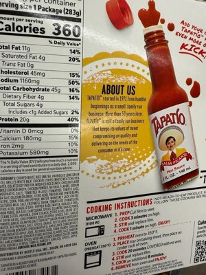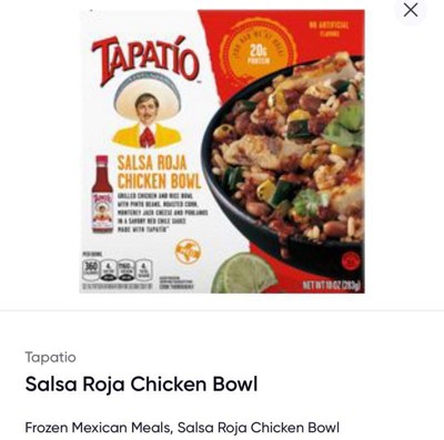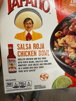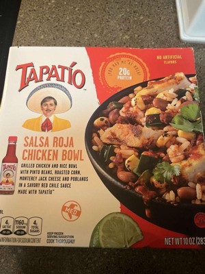 [This review was collected as part of a promotion.] This chicken bowl is easy to heat up in about four minutes. The chicken is decent for frozen/microwaved chicken and the spice and taste is really good. There is a bit of cheese in it and I added some cilantro and avocado for taste. This product was gifted by Tapatio in exchange for my review.