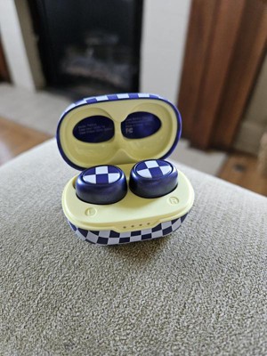 I love these! Super good sound quality. They are really small, the case, everything. Might be easy to lose, but so far so good. I have dropped them a couple times, and they still work perfectly. I absolutely love the color and checkered pattern. Great gift idea!
