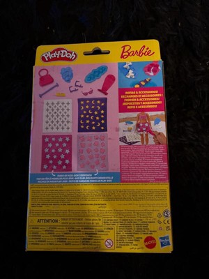 [This review was collected as part of a promotion.] Barbie Play-Doh set not only came with 4 different sheets that where all different patterns and colors but also gem molds and tools with accessories. It was very simple to use and stamp out. It did not have an odd smell and worked perfectly with the Barbie Fashionista Ruffles kit! Definitely designed for any one with a huge imagination and it kept my daughter busy for over 2 hours.