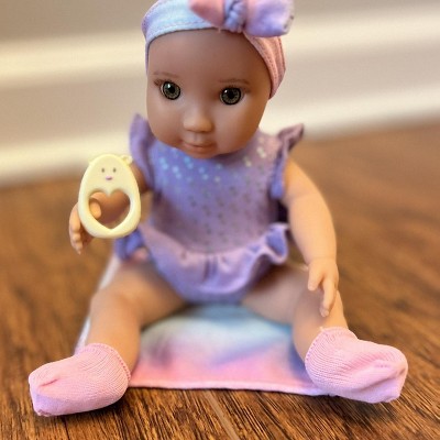 - 8-inch Baby Doll: Riley’s expressive hazel eyes and sculpted hands and feet will delight little ones during role-play. Plus, the pacifier fits in her mouth to mimic gentle soothing.