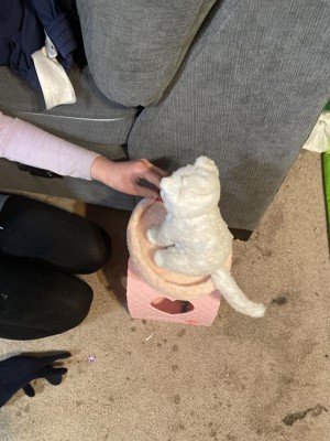The kitty is adorable. The tree condo isn’t the best quality as the top part doesn’t stay on. I would recommend looking into another kitten option from this brand as they have others!