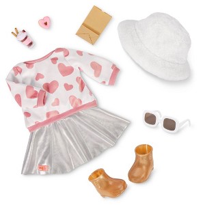 Our Generation Furry Fun Heart-Print Sweater & Skirt Outfit with Accessories for 18" Dolls