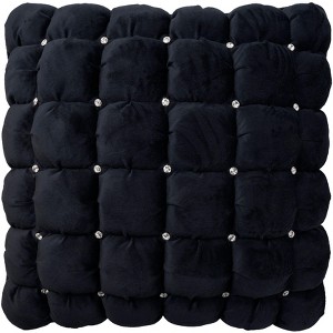 Enjoy unbelievable style and sparkle with this elegant black Mina Victory throw pillow. The lush and velvety Italian quilted cover has an unbelievably soft feel, which is enhanced by genuine Swarovski crystal accents for an instant boost of luxurious style. Handmade from 100% polyester; quilted pattern appears on face only. 20” square.