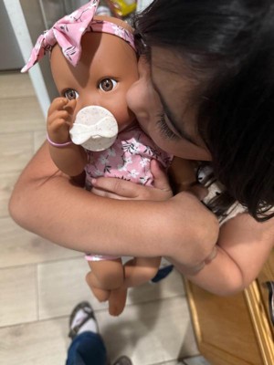LullaBaby 14" Baby Doll with Pink Floral Outfit & Pacifier - Brown Eyes