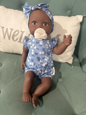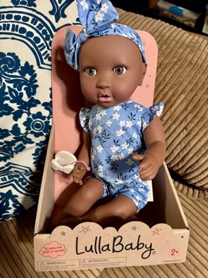 LullaBaby 14" Baby Doll with Blue Floral Outfit & Pacifier - Brown Eyes