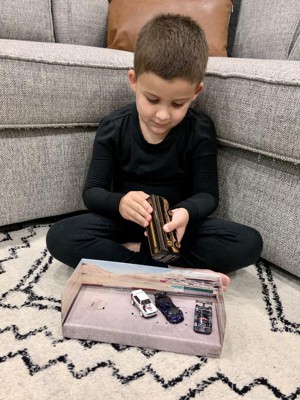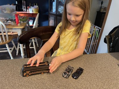 [This review was collected as part of a promotion.] We received this product and my son, who loves Hot Wheels, couldn’t wait to open it up! The structure and design of the cars was really cool and unique! The trailer was fun and different from the cars we have. The kids loved how the back opened up and one of the cars fit inside the trailer!