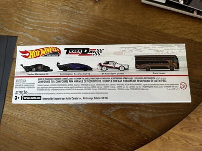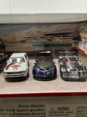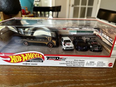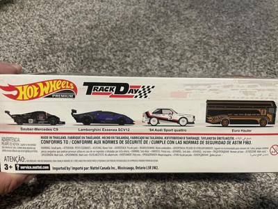 [This review was collected as part of a promotion.] First of all, right out of the box... pulling this out from its shipping box, this is a very nice set! The set up of the cars, positioning, the type of cars and colors is perfect. The backdrop of the "Track Day" art behind the positioned cars within the box diorama set is spot on and gorgeous. So nice that I honestly hated to have to open this set and just wanted to keep it as is for display! but then again, its a toy car set + I definitely need to do an unboxing review :) Again, the box/packaging art is awesome. Nicely packaged! Although wanting to keep this in the box, uboxing these diecase pieces truly shines out of the box! Much better out than in its package. The detail just pop out more, the colors are that much more vibrant, the paint on the cars truly shine and you can actually feel the quality of each piece. Here is info on each car: Euro Hauler - Nicely done, great graphics & livery. The colorway of the solid black and the bronze'sh/gold outlines & rims compliment each other perfectly! Audi Quatro - Although this car is nice, this is my least favorite of the Track Day car group of 3. But the car itself has a very nice livery on it with its red/black/grey striping on the white car. White rims go well with the car along with all the other sponsorship decals around the car. Great Detail Lamborghini Essenza SCV12 - Nothing much to explain here as looks is worth 1000 words. The deep blue color on this is stunning on this car. The detail and casting is jaw dropping. This car is by far the best out of the group. Such a stunner! Sauber-Mercedes C9 - This is a super cool car along with its livery! the TRON like lining all over the car gives it super nice sci-fi type look and letting all know that this car means business! the engine bay cover being able to come off is a very cool option on this car! and being able to check out the engine bay when off. The details are awesome and super clean. Love this casting and great with this set! Overall: This set is a hands down winner! and a great way to kick off the year with this new box diorama set for 2023. Each car is perfectly done in my opinion and the entire package capture the essence of... "TRACK DAY"! CONS: I think the Audi could have been replace by, not necessarily a better car, but a car that matched the Essenza and C9... it just seems, off. Anything within the category of the Essenza & C9 would have been awesome... In my personal; opinion, I would have loved to see some type of track Porsche!! next to the Lambo & Mercedes. NOW THAT WOULD TRULY MAKE THIS SET A HANDS DOWN MUST HAVE FOR ALL!!!! Conclusion: Again, this set is a winning set and will be grabbed instantly by all HW fans, diecast collectors, and just Car folks in general...just because its such a cool set.