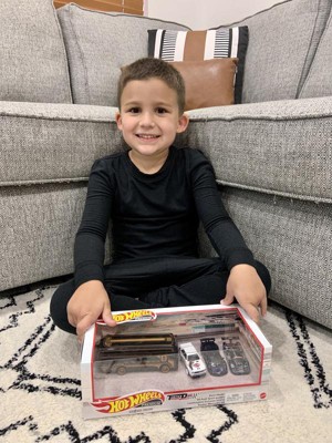 [This review was collected as part of a promotion.] Very cool Hot Wheels set that my boys both love playing with. Cool variety of vehicles, too, with high detail and attention paid to paint and moldings. I can see my boys playing with this for a long time to come.