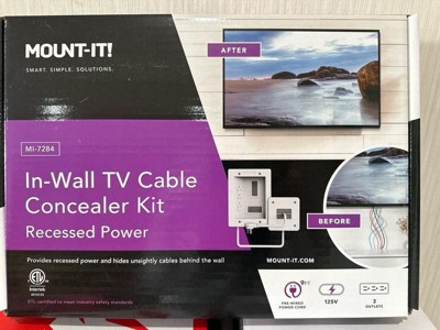 Mount-It! In-Wall TV Cable Concealer Kit w/ Recessed Power, Triple Outlet, 9ft Cord, Hand Saw, Safe Cable Management for Home Theater Setups