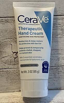 CeraVe therapeutic hand cream is lightweight and leaves your hands feeling hydrated and soft. The lotion is not greasy and absorbs relatively quickly. Another great element is its fragrance free making it great for everyday use. Only downside is it is a bit too lightweight for my liking but overall a great product.