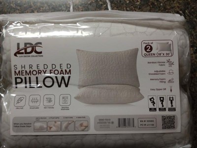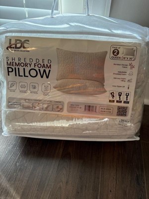 Product Name: 2-Pack Shredded Memory Foam Pillows Soft & Adjustable Loft with Removable Cover Hypoallergenic Sleeping Pillows - King White