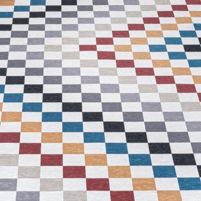 Our bold update to the classic checkerboard has a cheerful cottage feel. It's woven from durable synthetic fibers with a plush chenille texture and cotton backing. This easy-care, washable rug is great for high traffic spaces like a living room, kids room or entry.