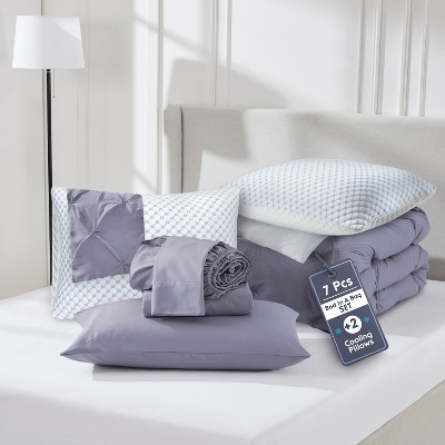 Nestl Bed in a Bag Pinch Pleat, 5 Piece Twin XL Bedding Set -Dusty Purple