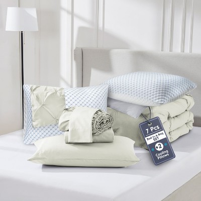 Nestl Bed in a Bag Pinch Pleat, 5 Piece Twin XL Bedding Set -Off White