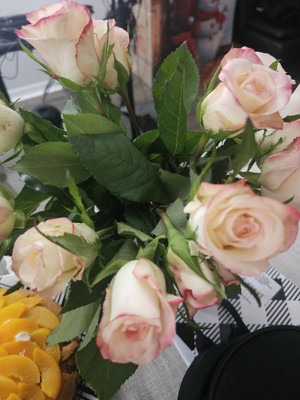 I received these flowers from my husband. I thought he had purchased them at a local store that deeply discounts flowers when many in the bouquet are dead... but I just found that he purchased these at my local Target. Now seeing that they were purchased at full price...I am VERY disappointed! Outer petals of several flowers in the bouquet were brown and 2 flowers were off the stems and rubberbanded among the stems of other flowers...completely rotten.