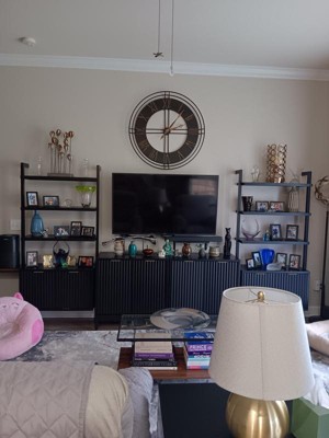 This TV console is exactly what I was looking for. It has a very sleek, modern look and instantly made my living room feel more put together. I love how much it helps keep toys organized without looking cluttered. Everything has a place, and it’s easy to keep the space looking clean even with kids around. The material quality is a 10/10 ..sturdy, well-made, and looks much more expensive than it is. Overall, I’m extremely happy with this purchase and would definitely recommend it.