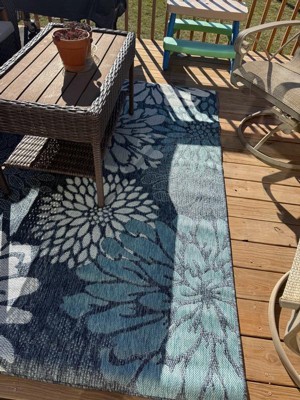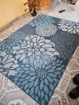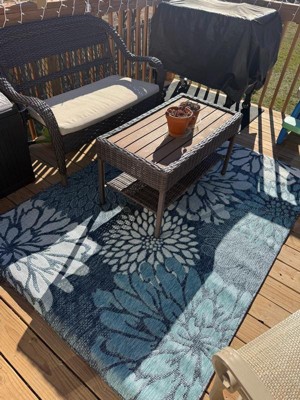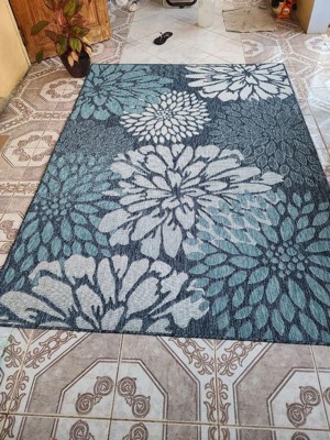 [This review was collected as part of a promotion.] The navy base with tropical leaf patterns gives a fresh, inviting look that works well with outdoor furniture and greenery. It’s bold without being too loud, so it fits in with different outdoor styles. The material feels durable and made for outdoor use it stands up well to foot traffic and hasn’t shown signs of fading even after a few weeks in the sun. I haven’t had any issues with mold or mildew, and cleaning is simple. A quick shake or rinse with the hose brings it right back to looking fresh. It’s also thin enough to sit nicely under a table and chairs without making things feel uneven, but still comfortable to walk on barefoot.