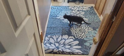 [This review was collected as part of a promotion.] This rug is nice. It was not very heavy at all to carry and put where I wanted it. There was not a strong smell to it when opened. As you can see in the pictures my kitty was already loving it.