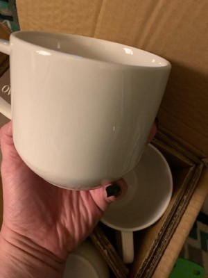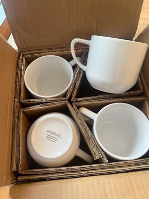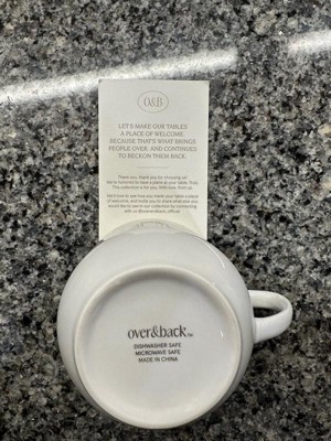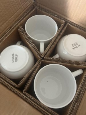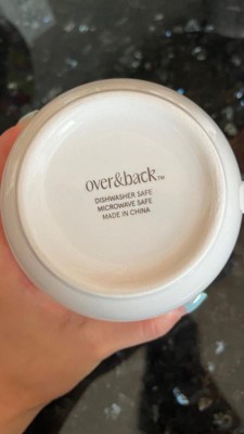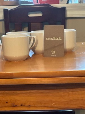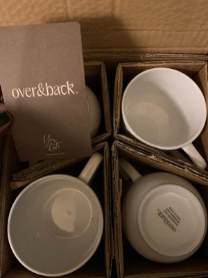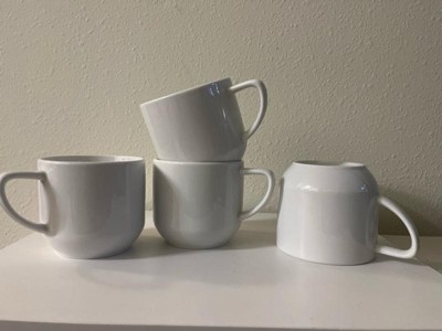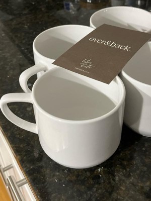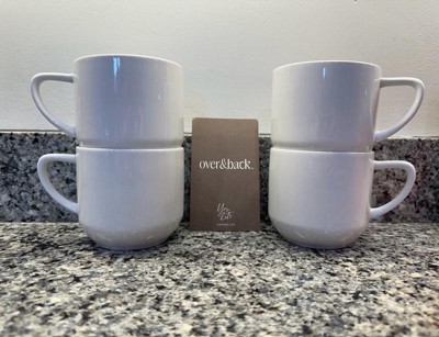 over&back Set of 4 14oz Coupe Glossy Hand-Finished Porcelain Mugs White: Microwave & Dishwasher Safe