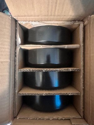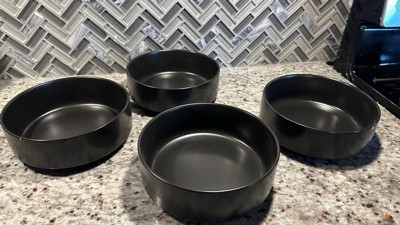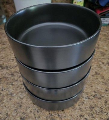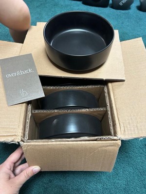 over&back Set of 4 25oz Stackable Hand-Finished Stoneware Cereal Bowls Semi-Matte Black: Microwave & Dishwasher Safe