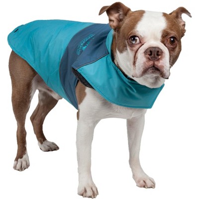 The Pet Life Baby Blue Adjustable Dog Raincoat is composed of a Waterproof PVC Material outer shell and inner lined with a thin layer of Fleece. This Dog Coat Features a fully Adjustable Removable Hood and adjusts at the tail end. Features a Leash Slit along the Neck Area. Sizing Guide: Measure From Back of Neck to Tail area ("In" Inches) 8" : EXTRA SMALL 10-12": SMALL 14-16": MEDIUM