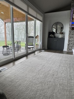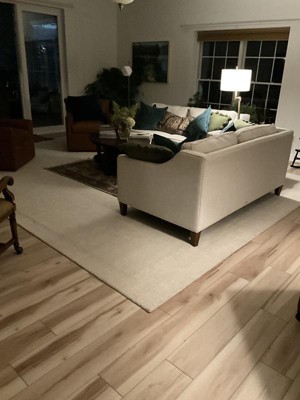 This is an inviting rug with cream and ivory tones. It lays beautifully over a rug pad. We have not had a lot of shedding at all. It is soft to sit on. What a lovely rug to have in our living room