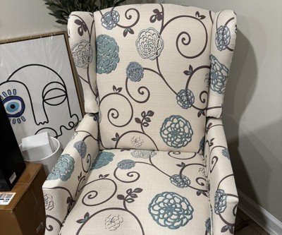 Christopher Knight Home Wescott Contemporary Fabric Wingback Pushback Recliner, Light Beige and Blue Floral
