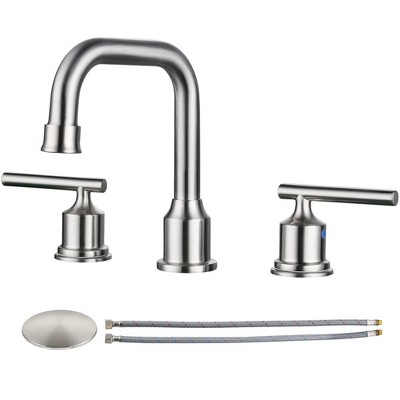 WOWOW 8 in. Widespread Double Handle Bathroom Faucet with Drain Kit