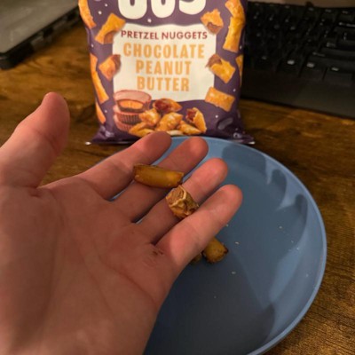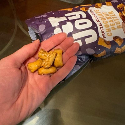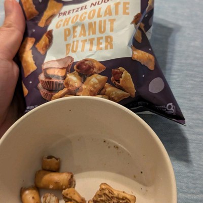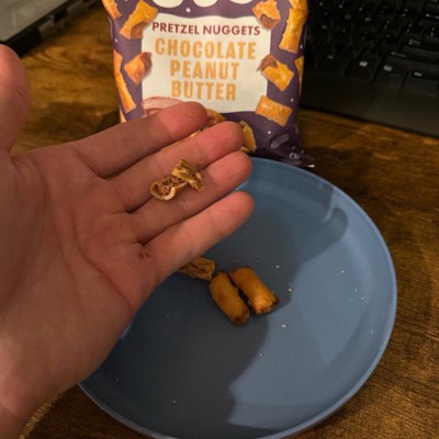 These chocolate peanut butter filled pretzel bites are quite confusingly delicious! I cannot tell if I really like the flavor of the chocolate peanut butter filling or the pretzel nugget itself. Both are amazing and tasty great!y one critique would be that the chocolate flavor could be more pronounced, but overall this is a very tasty snack!