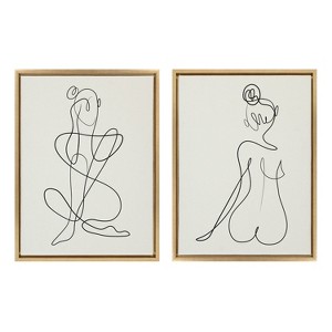 (Set of 2) 18" x 24" Sylvie Thinking of You Line Art and Sitting Beauty Framed Canvas Set - Kate & Laurel All Things Decor
