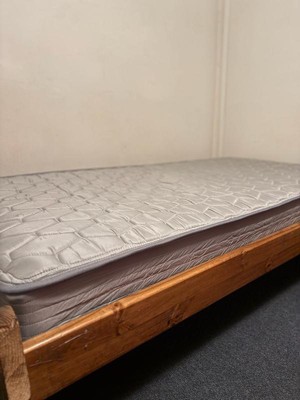 [This review was collected as part of a promotion.] This is a very spring-y mattress! My kids love it because it’s got quite the bounce. As an adult I can still feel the springs through the mattress so I’d want a mattress pad for sure. Over all it’s help up really well with kids and bouncing and has definitely kept its shape and supportive without being hard.
