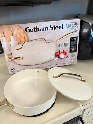 Gotham Steel Modern Deep Fry Pan 4 Qt Cream Ceramic Nonstick Saute Pan Skillet with Lid