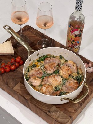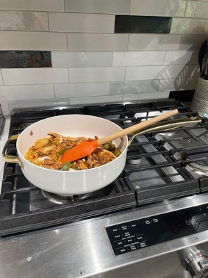 [This review was collected as part of a promotion.] A beautiful and functional pan. Not only does this pan look great in our kitchen, it feels sturdy and well-made. It’s not as heavy as some of our other ceramic pans and the deep walls make it perfect for cooking saucy dishes with pasta or chicken. Absolutely no problems with food sticking and I love that it has no teflon or other harmful coatings from a health perspective. This is quickly becoming one of our favorite go-to pans. Highly recommend!
